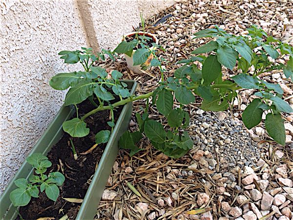 芽が出たジャガイモをプランターに埋めたら大きくなって、新しい芽が2つ出ました。 ラスベガスは春なので外に出したら数日でエライ育ちよう。 もしかしてコレは土中に沢山ジャガイモが出来たから? 花は咲いていし、枯れて無いけど収穫出来るのかな?
