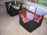 こちらに住んでる日本人の友達と話していつもメチャ盛り上がるテーマがあるんだよね~。それは、お互いの生活の「和風指数」について 。たとえば、彼女のところもウチと同じでパートナーはAussieだけど、彼女のご主人は日本語をかなり話すし、和食もけっこうOKなので「日本指数」は30%くらいかなってことで納得。インテリアとかも日本から持ってきた暖簾とかを上手に使ってるしね。 べつの友達のところは、パートナーは私たちと同じAussieだけど、かなり指数は高いとみたぞ。 食事はかなりの頻度で和食だし、なんと、会話は99%日本語なのよ~~~~! (楽チンそうよね、うーーーんって説明に困ったりしなくていいんだもん。) これは「和風指数」どかーんと上がる要素よ! ま、それでもやっぱりご主人がAussieってことで。80%ってとこかしらね。 おー、極めつけは、Sさんのおうち! 彼女のところは、日本人同士のカップルなので日常の会話はとうぜん100%日本語だし、食事はご主人がぜったいに和食党なのでバリバリ和風オンリー。そのご主人、毎朝、衛星放送でNHKのニュースで日本全国のお天気チェックを欠かしたことがないっていうから、もうここのお宅は「和風指数」99%くらい?? しかもどこのおうちにも共通してるのが、ちゃんと日本のスリッパを用意してて家の中は土足厳禁なこと。 うーーむ・・・・。 ウチは靴のまま普通にガシガし歩き回ってるけどなぁ。 日本人たるもの、やはり「スリッパ」ですかね、家の中は。 というわけで我が家の「和風指数」を模索。 言語;英語100% 食事;和食3%くらい (ウチのP太は、和食ほとんどNO、NO~)インテリア;2種類だけ・・・ (写真がそれ) しかも、この「和風もどき」だって、家の中にあまりにも「日本っぽさ」がなさ過ぎたので、ない知恵をシボってその辺にあったもので作ってみたという苦肉の策なの、じつは。 というわけで、ウチはホントに友達のなかでも「群を抜いて」指数が低いかも。(笑) 友達の評価;「和風指数」10% ですって・・・。 私が日本人である、という事実を含んでこの数字って? いくらなんでも、そりゃ低すぎるでしょー。たはぁ~~。 が、しかし!!去年11月に某クラフトサイトに参加してから、ほぼ毎日、日本語に接してるので、かなりの指数アップになっております。(えっへん)あと、このExciteブログ開始、という快挙(?)を成し遂げたので私の和風指数は、一気にうなぎのぼり(この表現あってる?)ね。これはかなり期待できそう。ウキッ!にしても、よそのお宅はどうなんでしょ?会話は? 食事は? 生活様式は??うーーん、気になる・・・。