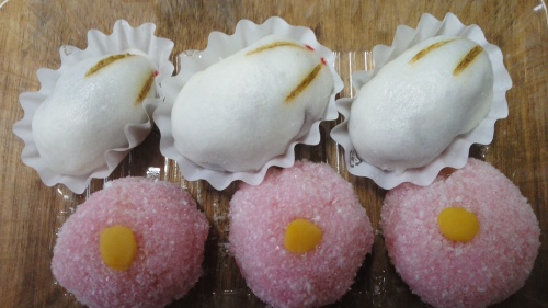 今日は、娘の和菓子教室の日でした。これが作品です。私が頂いたのは、こちらおいしかったよーで、お昼ご飯は、いつものささみの霜降りとポーチドエッグです。
