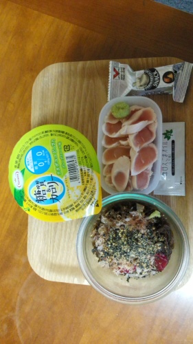 今日も一日無事に終わったよ夕飯はこんなものを食べました。もずくささみの霜降り糖質&カロリー0ゼリーその他チーズなどなどおいしかったよー