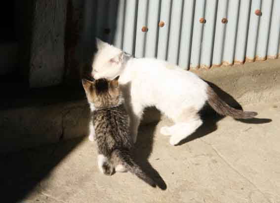 おはようございます♪日曜日の朝、ゆっくりと午前6時に起床です!!テレビを見ながら過ごします♪石川県金沢市の「近江市場」の「旬」の食材をやっていて、とっても美味しそうです♪冬の金沢もいいですネ!!来年の夏の「青春18きっぷの旅」では、能登・金沢・氷見を巡る予定です♪四国・徳島からだと手前になる福井は、2年間正月に訪れました♪雪の福井は良かったなぁ(*^。^*)♪今度の正月は広島です♪本場のお好み焼き「広島焼き」を楽しみにしています(●^o^●)♪今朝のニャンコはシロです♪納屋の中で、この秋に生まれた子猫と眠るシロです♪昨日は仕事が忙しすぎて・・・予定していた仕事がこなしきれませんでした。しかたなく持ち帰って来ています・・・(ー_ー)!!今日は香川県まんのう町の「かりんの丘公園」で、広島のケニーズクラブさんが「ケニーズ杯」を開催します(*^。^*)♪参加したいところですが・・・12月は日曜日しか休めないので・・・家の用事とかをこなさないといけません・・・。このあと仕事を片付けて、両親を連れて買い物へ!!午後から「かりんの丘」へオートバイは持って行かず、カメラだけで顔を出してみる予定です♪ニューフェイスの子猫です♪左端にトラ柄が隠れています(笑)!!夜はお隣の吉野川市美郷で開催している「高開石積みライトアップ」へ行く予定です♪今日の予定も盛りだくさん・・・忙しくなりそうです(●^o^●)♪ニャンコの写真も撮りためしておかないと・・・(笑)!!