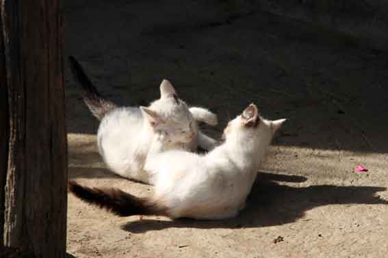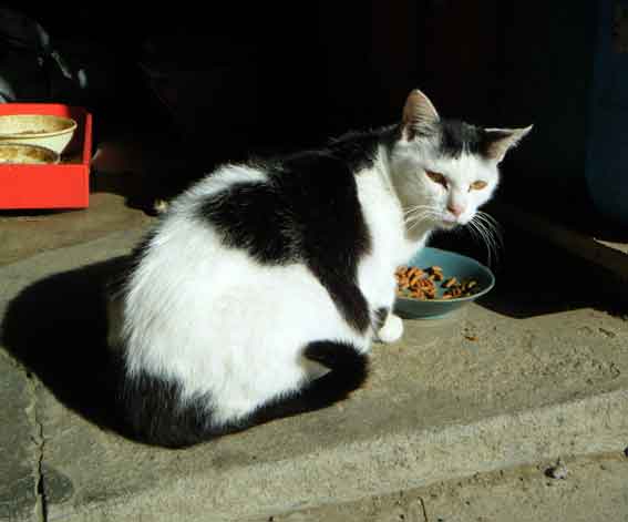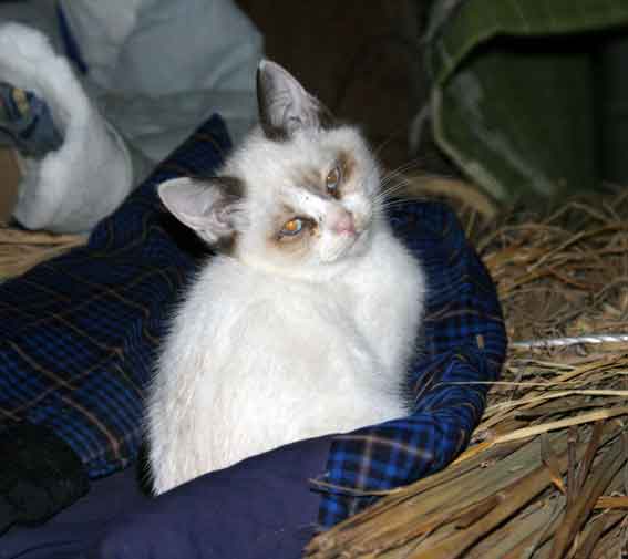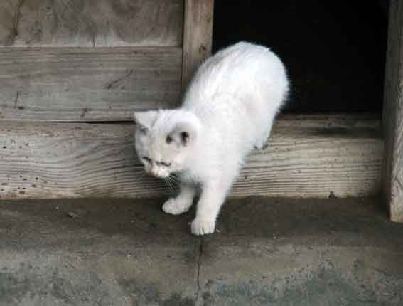 おはようございます♪今朝はゆっくりと午前6時まで寝ていました(笑)!!昨日、イラスト&エッセイの新年号の原稿が完了し、一段落したことと、仕事の方が混んで来て・・・ちょっと疲れが溜まり気味なので・・・。不景気な世の中ですが・・・さすがに師走となると忙しくなってきます(笑)♪今朝のニャンコはニューフェイスの一匹です♪3匹の中で、一番臆病なニャンコです!!しっぽだけが黒っぽくて・・・(笑)♪面白い顔をしています・・・(*^。^*)♪ 今日も忙しい1日となりそうです♪(●^o^●)♪