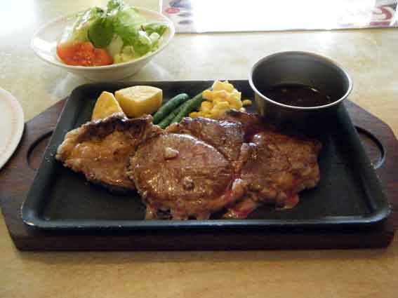 今日は超忙しい一日でした・・・。外に出て行かなければいけないし・・・来客も多い・・・(*^。^*)♪昼食は会社の近くのファミリーレストラン「ジョイフル」へ行きました!!普段は・・・ファミリーレストランへは・・・あまり行きません・・・(笑)♪会社に近いのと、出てくるのが早い事が選択理由です(^◇^)♪入り口に「ステーキの日」とあります・・・!!今日は・・・「ステーキの日」?????なんと150gの「ステーキ」が、「ごはん」も付いて599円です\(^o^)/注文しました♪安かったので「野菜サラダ」と「コーンスープ」のセットをプラスします♪150円でした(*^。^*)♪久しぶりの「ステーキ」です・・・。あぁ・・・この前「法事」の昼食に「ステーキ」が出たなぁ・・・(笑)♪我が家では・・・ほとんど出て来ません・・・(*^_^*)♪しかし・・・ファミリーレストランは・・・落ち着きません・・・。(*^。^*)♪