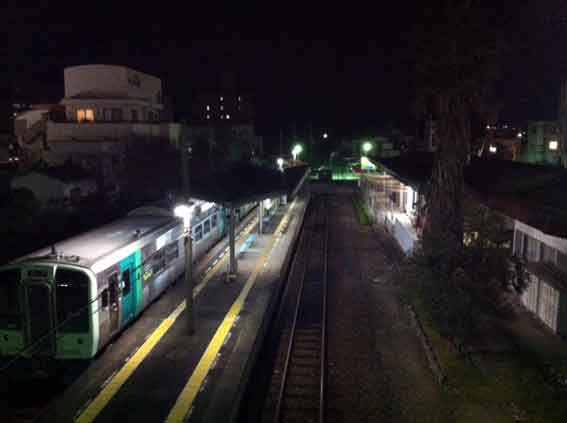 徳島県鳴門市へ通じるJR鳴門線の終着駅「鳴門駅」です♪JR鳴門線は、徳島駅と香川県高松駅を結ぶJR高徳線の「池谷駅」から分岐している「盲腸線」です♪12月11日(日)、鳴門市で開催されたフォーラムの「懇親会」のあと、宿泊先のホテルを出て「二次会」に行きました♪その時「鳴門駅」の手前の陸橋を越えて行きました♪iPhoneで撮った写真です(●^o^●)♪夜の・・・といっても午後8時過ぎですが・・・徳島県ではもう遅い時間です(笑)!!翌日は仕事だったので、早目に切り上げてホテルに戻ったのでした♪(*^。^*)♪