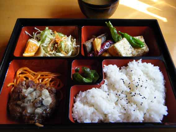 忙しい一日でした・・・。走りっぱなし・・・(ー_ー)!!いつも・・・これくらい忙しかったらいいのに・・・と、ふと思いましたが・・・身体が持たないと・・・気が付きました(笑)♪何事もほどほどに・・・!!今日の昼食はアメリカンステーションの「日替わりランチ」です♪「きのこハンバーグ」と「豆腐揚げ」でした(●^o^●)♪「きのこハンバーグ」です♪自分で「ハンバーグ」を注文する事は・・・ほとんどありません・・・。たまに食べる「ハンバーガー」くらいでしょうか(*^_^*)♪この「きのこハンバーグ」、あっさりしていました♪歳をとったなぁ・・・(笑)♪左にあるのは「ごぼうの煮物」と「大学いも」です♪箸休めになります♪美味しかったです(^○^)♪