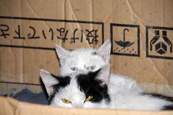 おはようございます♪寒い土曜日の朝となりました・・・。今朝は午前5時から年賀状を書いていました!!遠い場所から出していきます(笑)♪今日は仕事です・・・。昨日も出勤したので、少しは楽になると思うのですが・・・。今朝のニャンコはニューフェイスの子猫です♪トラの子猫は女の子です♪白い方は男の子ですが・・・ちょっと臆病なんです!!今日はクリスマスイブです♪といっても・・・我が家にはあまり関係のない・・・(ー_ー)!!それでも得意先に頼んだケーキを買って帰ります(笑)♪子猫達のプレゼントは「湯たんぽ」です♪あったかい夜が迎えられそうですネ♪(●^o^●)♪