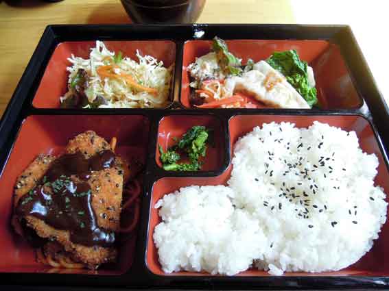 吉野川市山川町のアメリカンステーションで昼食です(^-^)♪ここは個室のようなボックス席なので落ち着きます♪読書をしながらゆっくりと昼食をいただきました!!「日替わりランチ」は、「ゴマチキンカツ」と「ギョウザ」でした(*^_^*)♪ 薄め「ゴマチキンカツ」は、香ばしくて・・・カリッと揚がっていて、とっても美味しかったですo(^▽^)o 福井県の「ソースカツ丼」の「カツ」がこんな感じなんです♪突然でスミマセン・・・(笑)♪こんな薄い「カツ」が何枚かご飯の上に乗っているのですが、とっても美味しいのです♪ 「ギョウザ」は柔らかめ・・・。私・・・少し焼きすぎたくらいが好きなんですが・・・(笑)♪美味しくいただきました(*^_^*)♪