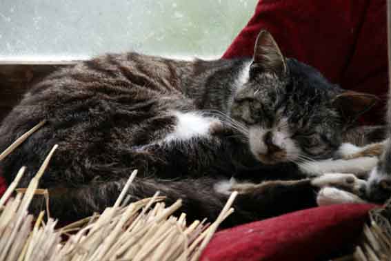 おはようございます♪暖かい朝です♪午前5時に起床、「鉛筆画」を描きます!!もう少しで一枚完成です(^O^)♪今朝のニャンコはトラ吉です♪ トラ吉・・・湯たんぽより、ここのワラのベッドの方がお気に入りみたいです♪納屋の軒下に風除けのビニールを張っていて、温室のようになっています♪(^O^)♪ 今日は1日「鉛筆画」を描く予定です♪途中、息抜きに買い物に出たりはしますが・・・(^O^)♪ニャンコの写真も撮らないと・・・!!(^-^)♪