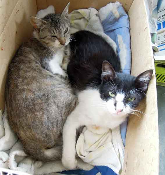 おはようございます♪今朝は午前5時半の起床です♪雨はなんとか小康状態となっています(^O^)♪今日は高知県高知市の正蓮寺オートランドで四国選手権トライアル第3戦高知大会が開催されます♪午前7時に出発予定です!!昨日は気温が下がり、ニャンコ達もダンボールの中で寝ていました♪ノラとマメ吉です♪ 愛車のステップワゴンが突然ご臨終となり・・・次の車を急遽注文しましたが・・・納車まで2ヶ月かかるとのことで・・・現在、代車のホンダ・ライフが足となっています!!首と肩の具合が悪いので、当然オートバイには乗れませんが、選手権の観戦には行きます♪ただ借り物の軽四で、いつものように高速を走る気分にはなれません・・・。大会に出場する分けでないので、昔みたいに国道32号をのんびりと高知へ向かおうと考えていました♪そうしたらトライアル仲間の尾上選手が「一緒に行こう!!」と電話をくれました♪(^O^)♪嬉しいですネ♪午前7時頃に迎えに来てくれるので、早く準をしませんと・・・!!o(^▽^)o
