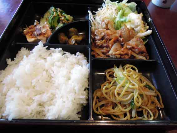 今朝は地震でビックリしましたが・・・その後は平穏でした・・・!!今日は土曜日ですが・・・仕事です!!午前中、つるぎ町へ行って来ました♪今、作成中の仕事の校正を持って行ったのですが・・・ちょうど「桃花遊々」が開催中でした♪このあと「すえドンのフォト日記」で紹介します(*^_^*)♪ 会社への帰り道、吉野川市山川町のアメリカンステーションで昼食をとりました♪「日替わりランチ」は、「豚肉のスタミナ炒め」と「豆腐の磯辺巻き」でしたo(^▽^)oアメリカンステーション・・・「アメステ」でよく出るメニュー「豚肉のスタミナ炒め」です♪ごはんにとってもよく合います♪たぶんビールにも・・・o(^▽^)o 「豆腐の磯辺巻き」です♪左は「ひじきの煮物」、上は「わかめの酢の物」です♪毎日ここで食べていたら・・・健康的だと思います・・・(*^_^*)♪