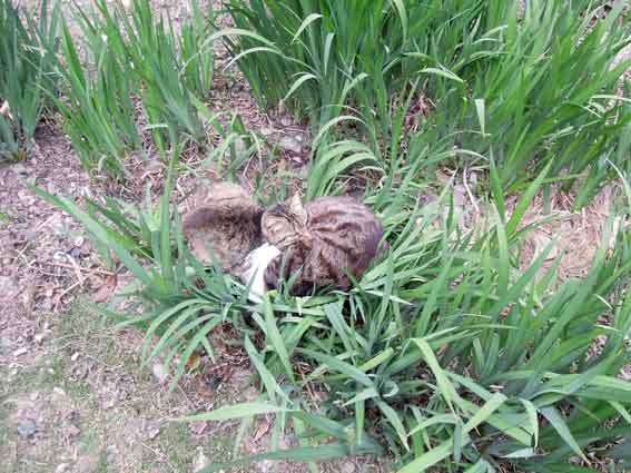 おはようございます♪「鉛筆画」の作成も終わり、今朝も午前5時半に起床、ゆっくりとしています♪結局、28枚の「鉛筆画」を描きましたo(^▽^)o今の気分は・・・この気持ちよさそうに寝ているトラ吉みたいな・・・(^-^)♪ トラ吉は庭の菖蒲の中で寝ていました♪もうすぐしたらきれいな花を咲かせてくれますo(^▽^)o ちょっと寝ぼけているトラ吉です♪よく寝て、よく食べて・・・丸々としていますo(^▽^)o
