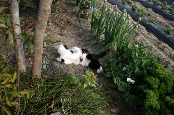 おはようございます♪28・29日の休みが終わり、今日は仕事です♪午前5時に起床し、旅行中のブログのネタを準備していました(笑)♪「すえドンのフォト日記」は、予約投稿が出来るので5月3~5日の分を更新したいと思っています♪ 今朝のニャンコはマメ吉です♪昨日2階の部屋から望遠レンズで撮りました♪ 庭の隣には、自家菜園があります♪もちろん無農薬です!!(*^_^*)♪ そうそう、今日は月末・・・忙しいのです・・・(>_<)!!頑張れば「千葉旅行」が待っています♪o(^▽^)o