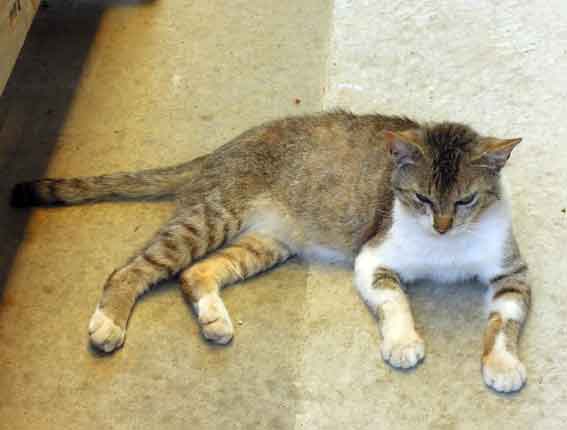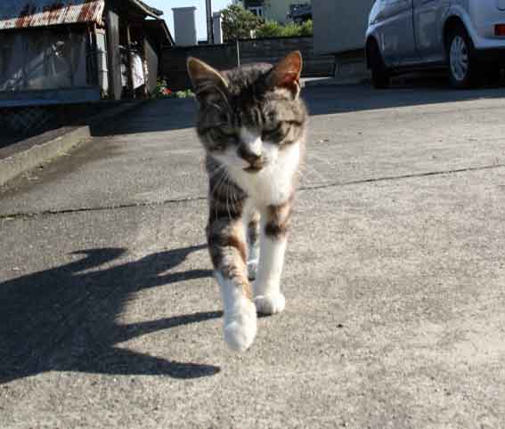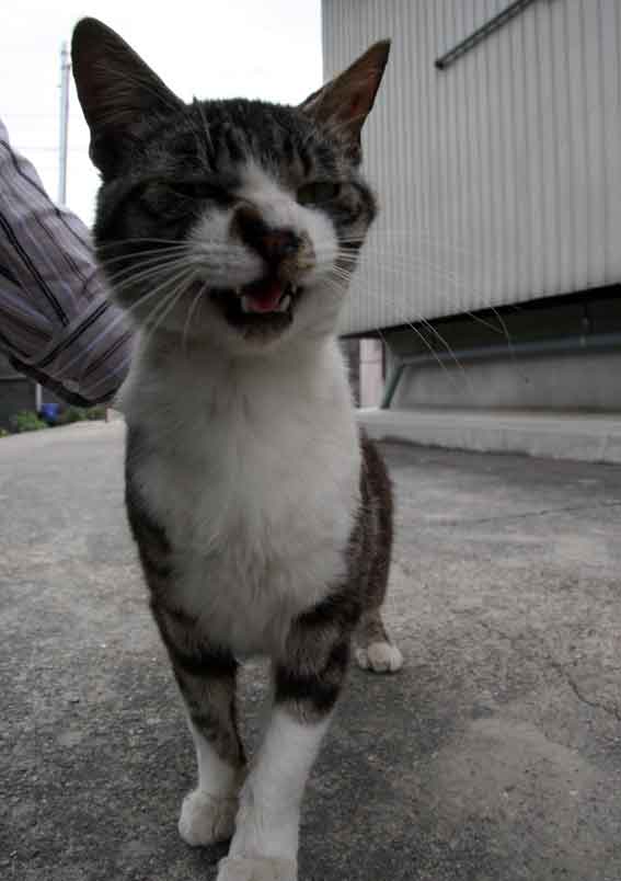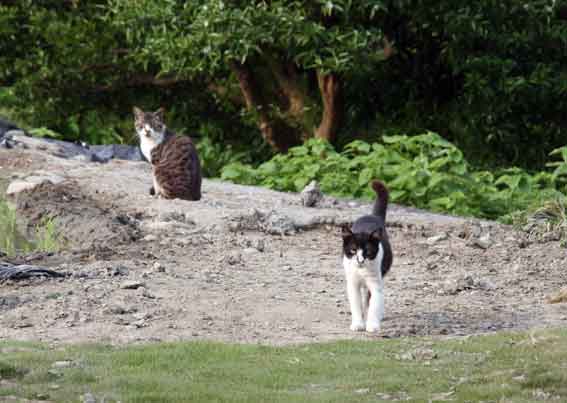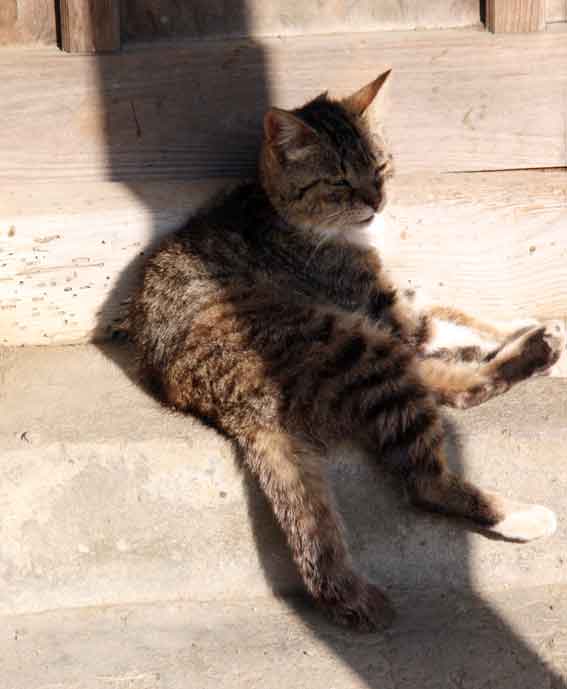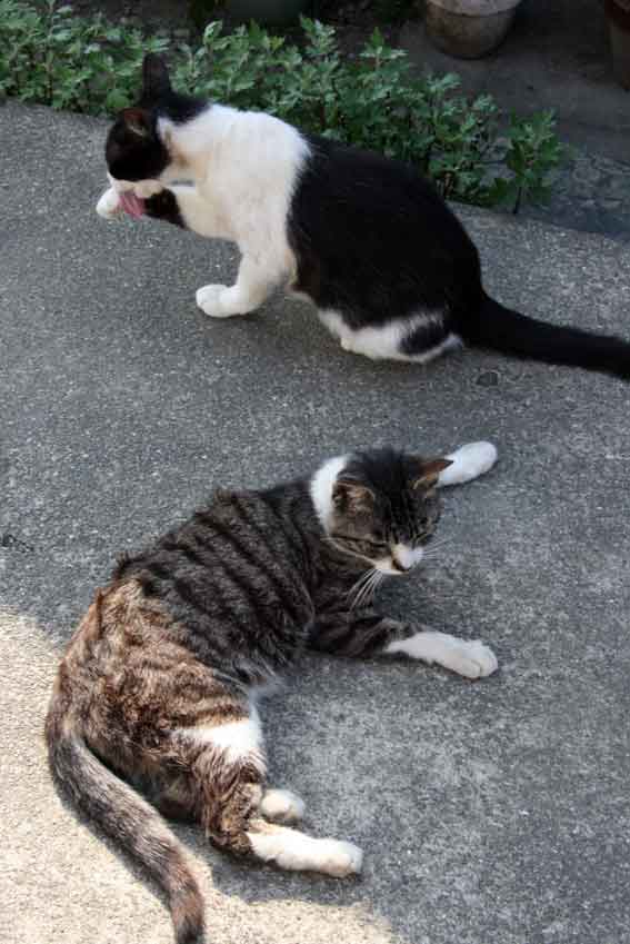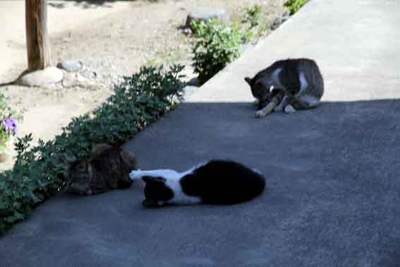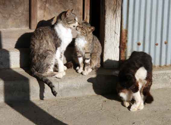 おはようございます♪月曜日の朝、午前5時半に起床♪昨日はトライアル写真の撮影で歩き廻ったので、少し足に疲れが・・・!!でも、あれくらいで疲れるとは・・・(>_<)!!このところの運動不足がたたっているようです・・・。今朝のニャンコは・・・まずは納屋でまったりしている茶々です♪ マメ吉とノラです♪最近、この三匹がよく一緒にいます♪ 今朝は曇り空・・・天気は回復傾向です!!(^O^)♪