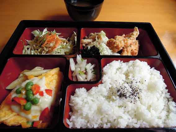 今日は曇りのせいか・・・少しだけ過ごしやすい1日でした♪昨日、今日と納品が多く・・・ちょっと首周りに疲れが・・・!!力仕事ですので・・・(笑)!!吉野川市山川町のアメリカンステーションで昼食です♪「日替わりランチ」は「オムレツ」と「ゴマからあげ」でした♪ 色どりがきれいな「オムレツ」です♪私はオムレツが好物なんです(^O^)!! 「ゴマからあげ」です♪左上は「切干大根の煮物」、左下は「ひじきの煮物」です♪美味しくいただきました(^O^)♪
