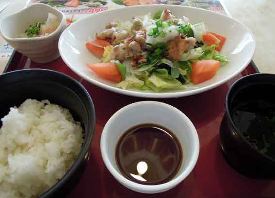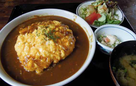 今日も蒸し暑い1日でした!!なんか・・・「黄砂」が凄かったような・・・。今日の昼食は、石井町のレストハウス「久善」でいただきました♪そろそろ「ざるそば」をやっているかな?!と、楽しみにしていたのですが・・・まだ温かい「そば」でした・・・(>_<)!!というわけで「オムレツカレー」を注文しました♪「野菜サラダ」に「小皿」、「みそ汁」までついて650円です(*^_^*)♪ ごはんの上にオムレツがのっています♪「久善」で食事をすると・・・夕食までおなかが空きません!!o(^▽^)o
