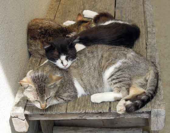 おはようございます♪今朝は午前5時に起床、仕事を少し・・・。今朝のニャンコは勝手口の前でくつろぐ、ノラ・マメ吉・茶々です♪ マメ吉・・・顔が汚れて見えますが・・・模様です・・・!!ちょっと損をしています・・・!! 寝るのが仕事??のニャンコ達!!たまに・・・うらやましく思います(*^_^*)♪