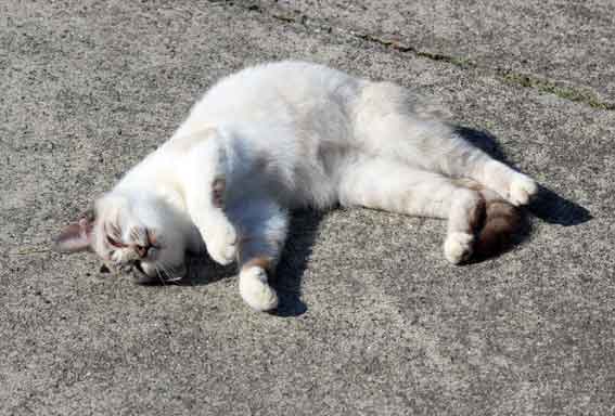 おはようございます♪朝の光景です♪シロ母さん・・・ここのところ、別荘から里帰りしています!! マメ吉は・・・いつも勝手口の前でゴロンとしています・・・!! 珍しく・・・レオが家の軒下に・・・ちょっと食べ過ぎ・・・(爆笑)!!撮り方のせいだと思うのですが・・・今日も蒸し暑いのでしょうかネェ・・・長袖のシャツをやめて、半袖にしたい感じの最近の気温と湿度です・・・!!( ̄▽ ̄)!!