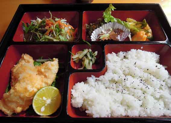 10月7日(月)・・・さすがに今日は・・・ちょっとお疲れ気味です・・・!!( ̄▽ ̄)午前中、つるぎ町まで行って・・・帰りに吉野川市山川町のアメリカンステーションで昼食をとりました♪「日替わりランチ」は、「しそ巻チキン」と「ししゃもの天ぷら」でした!!「しそ巻チキン」です!!あっさりしています(^O^)♪「ししゃもの天ぷら」です♪「レンコンの天ぷら」もありました!!となりはコンニャクと人参の「白和え」です(^O^)♪