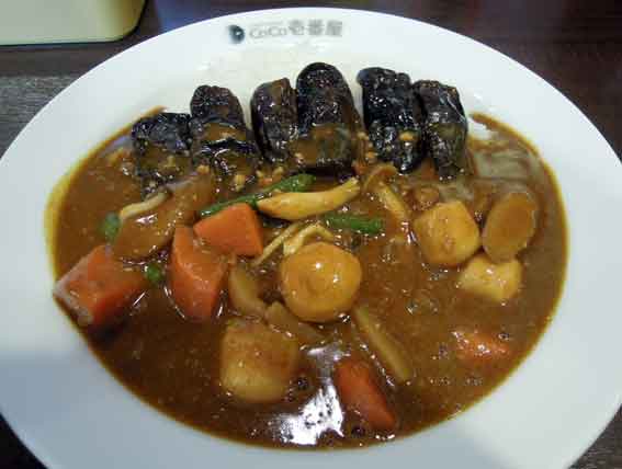今日の午前中、藍住町から徳島市へ・・・!!徳島市国府町のCoCo壱番屋で昼食をとりました♪10月から新メニューが登場していました(⌒▽⌒)♪注文したのは・・・「根菜鶏そぼろカレー」です!!「ナス」をトッピングしました(*^_^*)♪「里芋」「人参」「ごぼう」「じゃがいも」「きのこ」に・・・「いんげん豆」も・・・!!「3辛」でいただきます!!これが・・・とっても美味しいのです♪「カツカレー」より美味しいです(⌒▽⌒)♪クセになりそうです♪