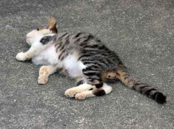 おはようございます♪今朝も午前4時半の起床です!!トライアル専門誌「ストレートオン」に掲載するエッセイを、早朝のクリーンな頭で考えます♪昨日イラストを宅急便で発送、今朝メールでエッセイを送り終え、無事2ヶ月に1回の「イラスト&エッセイ」が完了しました!!2ヶ月に1回で、今回が91回目・・・91x2=182・・・12で割ると、なんと15年にもなります(*^_^*)♪今朝のニャンコはニューフェイです♪ 台風26号が通り過ぎたら・・・一気に秋がやって来ました!!今朝も肌寒い朝となっています!!ニャンコ達は、朝日の当たる場所で日向ぼっこを始めます!!(*^_^*)♪ 一人前に日向ぼっこしています♪そろそろ名前も考えないと・・・(^O^)♪次のイラストの締切が12月の初旬・・・頑張って次のイラストを続いて描こうかなぁ・・・12月が楽になりますから・・・(*^_^*)♪