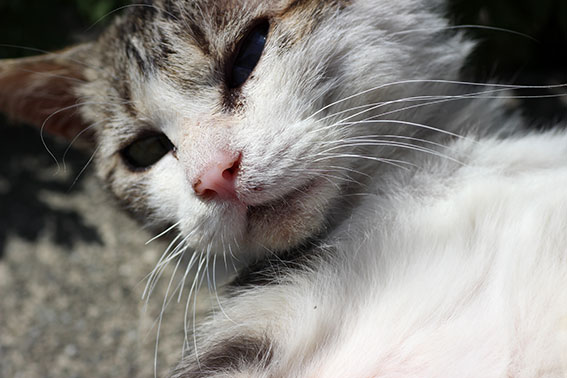 おはようございます♪5月12日(月)の朝は、曇り空です・・・!!夜には雨になるとのこと・・・農家の方はひと雨欲しかったでしょうネ!!今朝のニャンコはノラです♪ 口を怪我していたので・・・普段は片目をつむっているように・・・怖い顔をしていますが・・・おとなしく優しいニャンコです(笑)!! 5月もはや中旬に・・・早いですネェ・・・!!(●^o^●)♪
