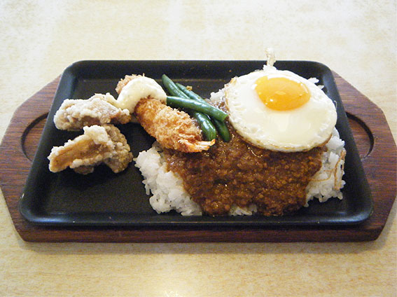 今日の午前中は・・・会社で缶詰でした・・・。昼食は会社の近くのファミリーレストラン「ジョイフル」へ!!「キーマトルコライス」なるものを頼みました(笑)♪「ごはん」の上に「キーマカレー」、その上に「目玉焼き」♪ 「から揚げ」が2個に「エビフライ」そして「インゲンマメ」!! 「キーマカレー」はそんなに辛くありませんでした!!なかなか美味しかったです(●^o^●)♪