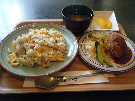 忙しい1日でした♪午後1時・・・少し遅れて昼食です!!吉野川市山川町のレストハウス「シェフ」でいただきました♪「日替わりランチ」は「炒飯」と「メンチカツ」でした(●^o^●)♪私の好物です・・・フフフ・・・♪美味しくいただきました\(^o^)/しかし、今日は暑かった・・・!!汗をかきました・・・。