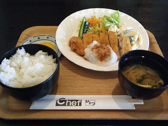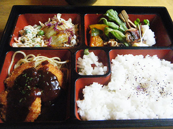 今日も忙しい一日でした・・・(^○^)♪吉野川市山川町のアメリカンステーションで昼食をとりました♪「日替わりランチ」は、「チキンカツ」と「椎茸のベーコン巻」でした(●^o^●)♪ 「チキンカツ」のドミグラスソースかけです(*^_^*)♪下にしかれたパスタも、ソースにからんで美味しいです(^-^)♪ アメリカンステーションでは、毎回オリジナルな手作り料理が登場して、楽しみです♪美味しくいただきました(●^o^●)♪