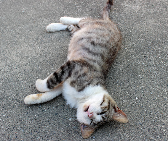 おはようございます♪週末、金曜日となりました!!一週間があっという間に過ぎ去っていきます・・・(^○^)♪今朝のニャンコはノラです♪ ノラはふだんは畑の中でウロウロと・・・(笑)♪ひなたぼっこが日課です!! マメ吉は・・・どこでもゴロゴロ・・・!!車が近づいても逃げないので困っています・・・!!今日頑張ったら、明日は休みです!!(^○^)♪
