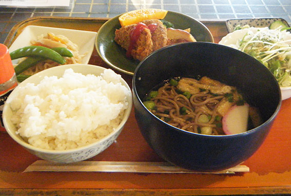 吉野川市川島町の軽食喫茶「リバーランド」で昼食をとりました♪駐車場が空いてたので寄ったのですが・・・中は満席です!!ちょうどテーブルが空いてラッキーでした(●^o^●)♪すぐ近くに合同庁舎があるので、歩きで来る人が多いのでしョウネ♪「日替わりランチ」は、「日本そば」と「メンチカツ」でした(^○^)♪「エンドウと切り干し大根の煮物」や「野菜サラダ」も付いています♪ 「日本そば」です♪なんと・・・このランチ・・・500円なんです♪コーヒーを付けても600円\(◎o◎)/!財布にやさしてランチでした♪もちろん、美味しかったです(●^o^●)♪