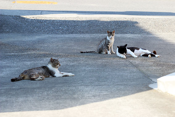 おはようございます♪日曜日の夕方の我が家のニャンコ達です♪今朝は午前5時過ぎの起床!!昨夜の雨も上がり、今日は晴れの天気となります!!暑くなりそうです・・・(*^_^*)!! すっかりこの3匹が仕切っています♪車が来ても逃げないのが・・・困ります・・・(ー_ー)!! トラ太は私を見つけると・・・やって来ます♪(●^o^●)♪