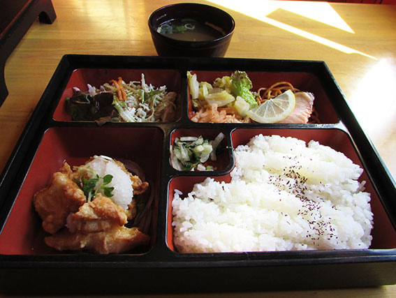 寒い1日でした・・・。忙しいのに・・・次々と雑用が舞い込んできます・・・(≧∇≦)/やっと吉野川市山川町のアメリカンステーションで落ち着きました(笑)♪「日替わりランチ」は、「鶏のから揚げおろしポン酢」と「焼鮭」でした!! 「鶏のから揚げおろしポン酢」です♪アメリカンステーションでは、お馴染みのメニューです♪「焼鮭」です♪隣は、「白菜のおひたし」と「大根キムチ」です!! ゆっくりと昼休みがとれましたヽ(´▽`)/
