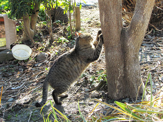 おはようございます♪朝から鉛筆画の作成をしたいと思っていましたが・・・やっぱり・・・眠い・・・(笑)♪無理をせず午前5時半の起床です(笑)♪昨日、iPhoneのフェイスブックが調子悪くなり、夜にデータ更新等を行っていたら遅くなってしまいました!!(T▽T)!!今朝のニャンコは・・・木登りニャンコです♪これは・・・トラちゃんの子供、子トラかな?! 身体は小さいのですが・・・大人の顔になってきました!!しかし・・・トラだらけで・・・本当に区別が大変です(笑)!! あ~年末です・・・忙しい!!頑張りましょうヽ(*´∀`)ノ