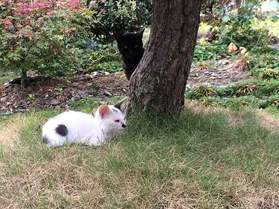 おはようございます♪午前5時20分の起床、仕事の準備をします!!今朝のニャンコは、松の木の下が定位置になりつつある、ふじこさんとこのシロちゃんと、トラさんとこのクロちゃんです♪仲良く寝ています!!二匹ともすっかり慣れていますヽ(^o^)丿芝生の上に、松葉が落ちていてフカフカです♪木陰で風通しも抜群です♪クロちゃん、とってもなつっこくなって来ました!!今週も忙しい一週間となります!!週末から、甥の結婚式で大阪へ・・・「日本麻フェスティバルin兵庫」「吉野川市麻シンポジウム」土・日・月もめいっぱいですヽ(^o^)丿