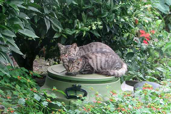 おはようございます♪午前5時40分起床、湿度の高い日が続きます・・・!!今朝のニャンコは、トラかあさんとトラです♪トラは少したてがみのような毛と、ふさふさの尻尾が特長です♪親子ですネェ・・・よく似ています(●^o^●)♪昨夜もかなり雨が降りました!!今朝は雲の多い曇り空です!!今日も暑くなりそうな気配・・・早く秋になって欲しいです!!
