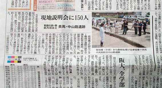 9月9日(金)の、徳島新聞の長官にこんな記事が掲載されました!!美馬・中山路遺跡 青銅の鈴・椀 県内初出土この遺跡のすぐ東南100mには、国史跡「郡里廃寺跡」があります♪私・・・この「郡里廃寺跡」遺跡の発掘調査を追っかけておりまして・・・今回の新聞記事は、とってもワクワクするものでした!!今日は仕事が休みです♪しかも晴れの天気(●^o^●)♪125ccのスクーター、ヤマハ・マジェスティで現地へ行って来ました♪今回の発掘調査は、徳島県美馬市美馬町の県道鳴門池田線沿いの「道の駅」の建設に関係した発掘調査でした♪発掘規模は小さかったのですが、なにしろ国史跡「郡里廃寺跡」のすぐ゛隣です!!何が出てくるか・・・とっても楽しみでした!!今日、いただいた資料です♪徳島県の考古学・・・とにかく貧乏県なものですから・・・お金がありません!!資金さえあれば・・・「ここ掘れワンワン」状態、掘ればいくらでも出てきます!!単弁十二葉蓮華文軒丸瓦青銅製の「馬鈴」鉄製紡錘車(●^o^●)♪