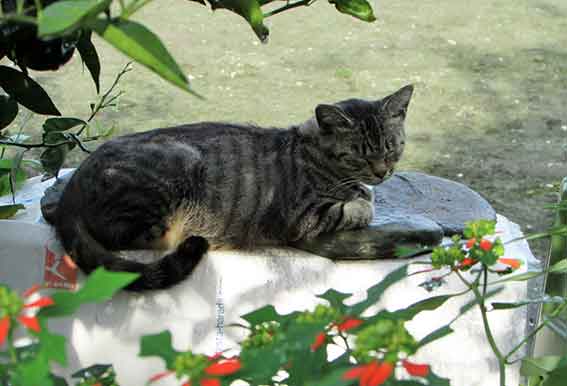おはようございます♪台風が再び近づいてきていますが・・・晴天です!!蒸し暑い夜でした!!午前5時起床、鉛筆画を描きます♪今朝のニャンコは・・・隣の家の庭でくつろぐカトちゃんぺっ!!プッ!!いじめっこのジャイアンです・・・!!今日は雨になるのでしょうか??台風の被害がないことを願っています!!(●^o^●)♪