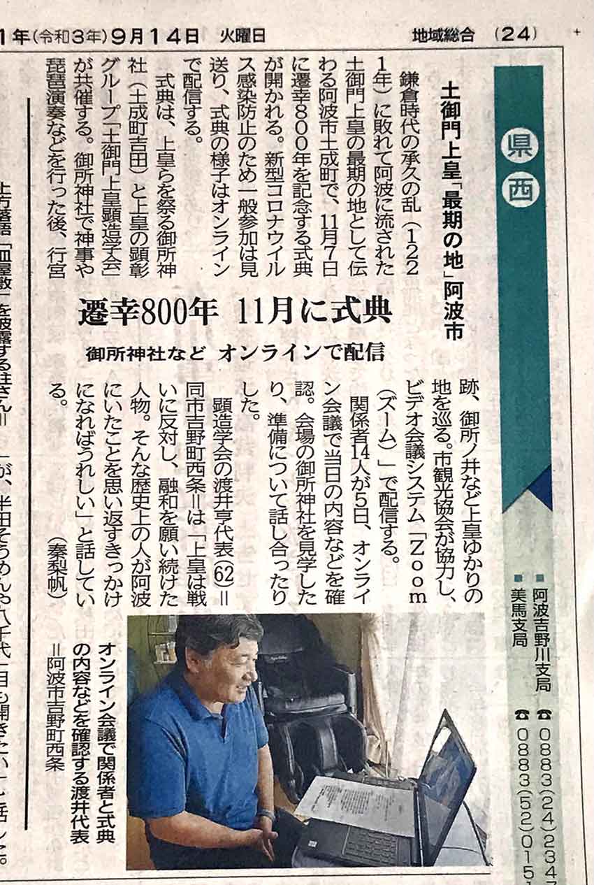 今朝の徳島新聞に民話「阿波狸合戦」の記事が掲載されましたヽ(^o^)丿台風14号は、寝ている間に通り過ぎてくれました!!被害が出なくて助かりましたヽ(^o^)丿今日は仕事でした!!徳島県西部、東みよし町まで走りました。昼食は東みよし町の中華料理「菊花楼」でいただきました♪定番の「中華ランチ」ですヽ(^o^)丿美味しいです!!今日の仕事帰りです♪台風が通過して・・・蒸し暑くなりました!!