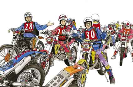 トライアルも、コース場に1セクション・2セクションと、競技区間が設けられていて、その区間内をオートバイで走ります。当然、走りづらく作られています(^_^)~・・・♪1回足を付くと減点1、2回で減点2、3回以上は減点3で、転倒・エンジンストップ・コースアウト等は減点5となります。