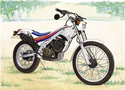 イラストは、香川県八栗テックで行われた四国選手権トライアルの香川大会の会場に来ていたTLR250です♪大切にされていて、とってもきれいなマシンでした(*⌒▽⌒*)♪