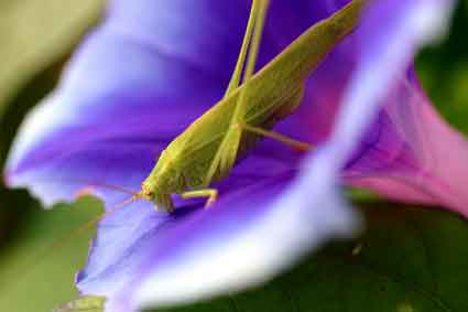 朝顔にバッタ・・・変なとりあわせです(爆笑)!!
