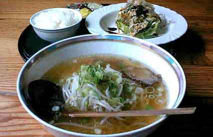 「しょうゆラーメン」に「ごはん」・「つけもの」、そして私のお気に入りの「もやし卵焼き」が付いています♪