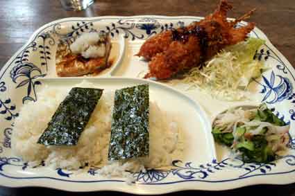 今日のメニューは「串かつ」に「塩さば」でした♪