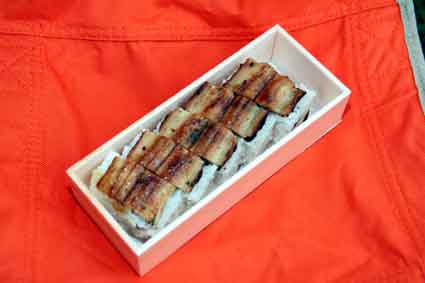 今日の写真は「豆腐となすのカレー」ではなくて・・・下関に行った時、広島の宮島SAで買った「あなごすし」です♪700円也・・・(^ ^ ;♪