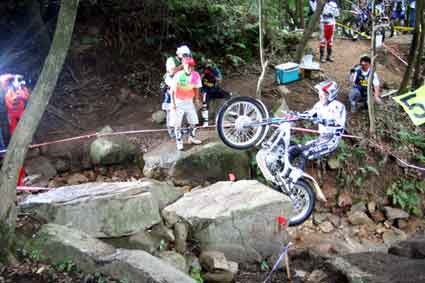 第5セクション、沢の中にある大岩を越える国際A級スーパークラス小川友幸選手です!!