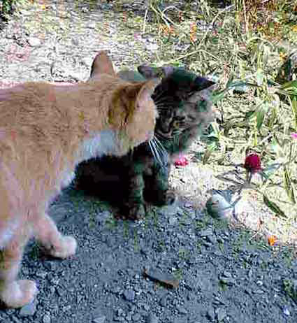 最近、単独行動の多いキジトラもタマにだけは甘えています!!