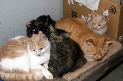 ボス猫(肝っ玉母ちゃん)のタマの周りには、いつもこんな状態です!!