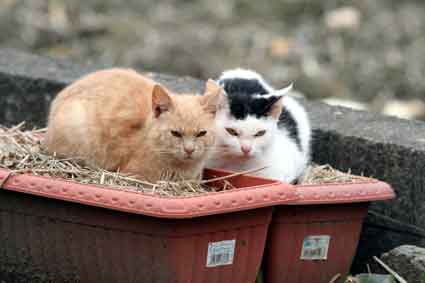 プランターの上にチャトランとシロが仲良く並んでいました!!