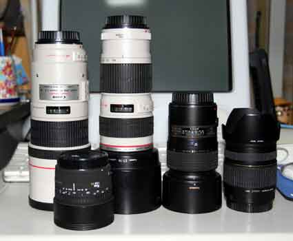 左端がキャノンのEF 300mm 1:4 L ISで、手ブレ補正機能付きの単焦点レンズです(^ ^ ;♪