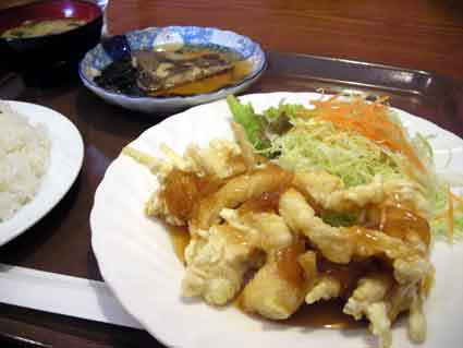 今日のランチは「いかとごぼうの天ぷら」に「カレイの煮付け」が付いていました(^ ^ ;♪